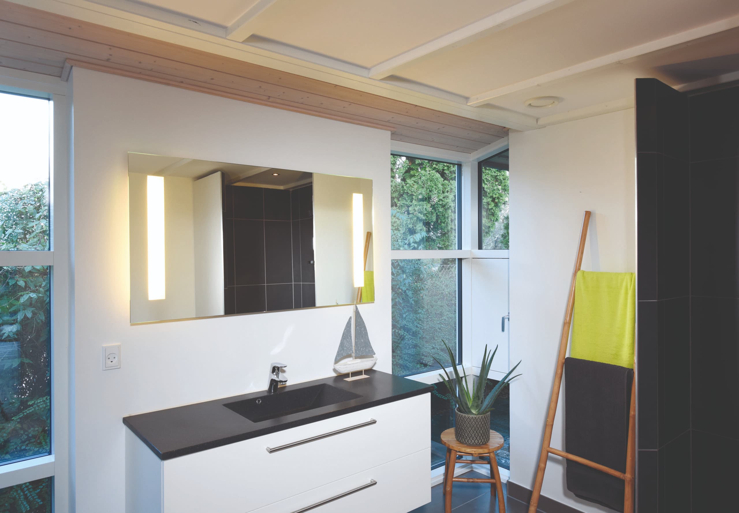 • Badeværelser monteret med skuffer, spejl med integreret lys, klinker med gulvvarme